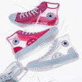 近年来,各品牌很喜欢运用透明材质制作商品,尤其是方便携带的小包,不过,鞋款似乎也能完美利用这种材质,因为Converse Japan最近就成功打造一双以C