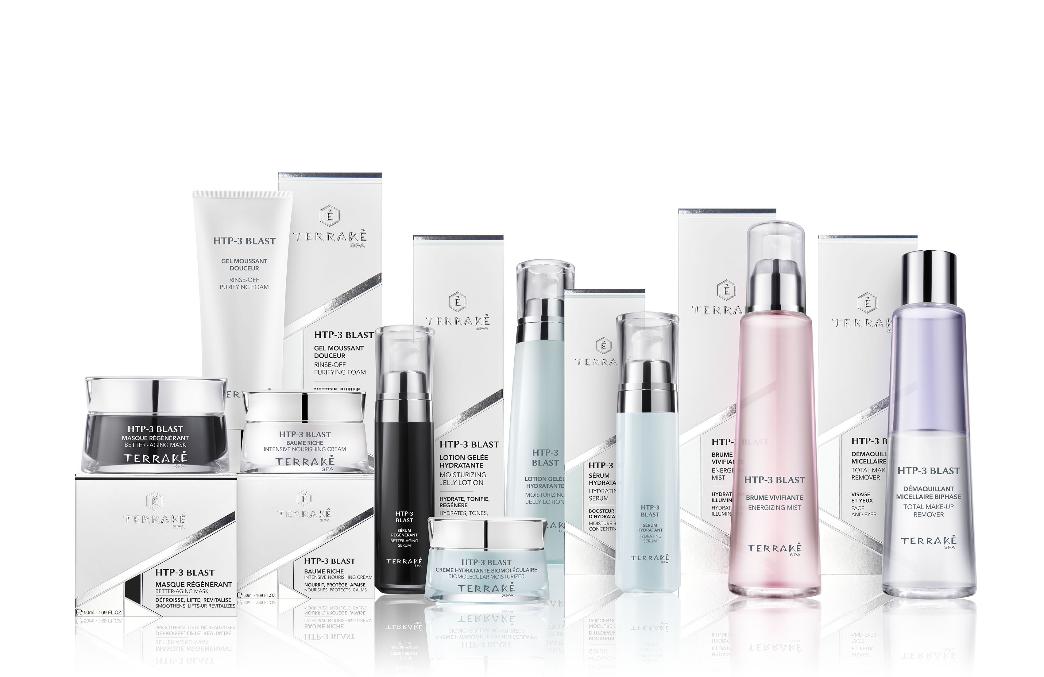 TERRAKÉ SPA法国天莱引进到国内市场的HTP-3系列新品分为:精准净透、分子赋活保湿、盈润新生滋养以及凝萃抗衰4个系列,15款高品质护肤产品可以满足消费者各种不同肤质的修护抗衰的肌肤护理需求。