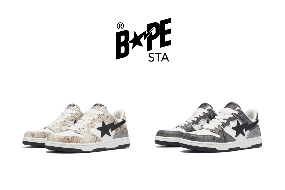 系列延续BAPE® SK8 STA经典鞋型设计,精选多种优质皮革打造,包括牛皮和麂皮等,赋予鞋款超凡耐用性和持久的精致感。鞋面以黑色和白色作为基底,搭载浅褐、深灰两款仿真蛇皮创意,形成质感与肌理的巧妙碰撞,带来融合优雅风格和异域格调的惊艳视觉。