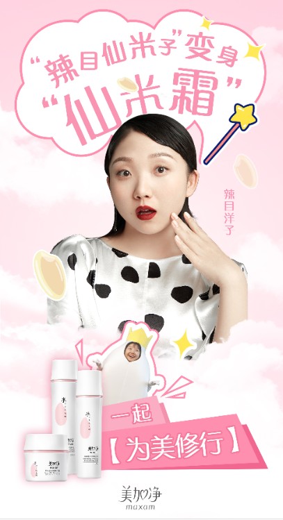 在此次的仙米霜的短片中,辣目洋子再次突破自己,饰演了一粒米,并开启了“为美修行”的旅程,用趣味生动的方式为大家展示了从一粒米到仙米霜需要经历的努力和蜕变,其实也诠释了美加净为了让更多用户收获“美”而付出的不懈努力。美的表现各有不同,美加净也希望借由自己的力量,为更多女性带来自信,让她们焕发多样的魅力!