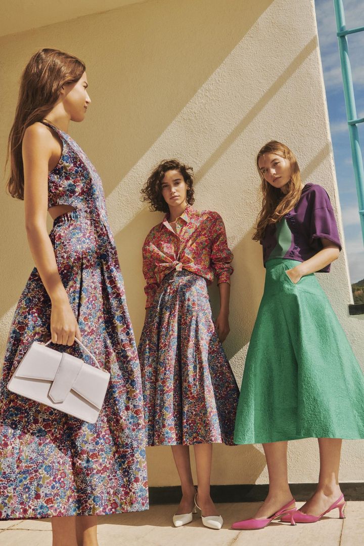 伞裙、短款上衣、紧身及宽摆连衣裙重溯复古韵味,以高饱和度的明媚色彩以及多色碰撞的碎花构成,切合春夏绚烂馥郁的气息,瞬间聚焦人潮焦点。经典宽褶中长伞裙及于小腿,搭配尖头细跟单鞋,尽显优雅摩登气质。短上衣展露优美曲线,集性感和活泼于一体。碎花连衣长裙叠加后背镂空细节,修饰腰身,打破常规,散发少女氛围感。